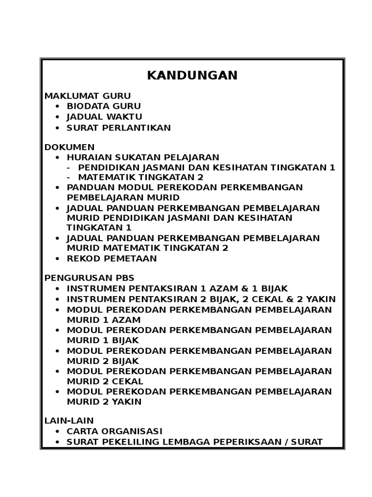 . Contoh Instrumen PBD dalam artikel ini hanyalah sebagai panduan dalam memberi idea kepada guru tentang bentuk instrumen yang boleh digunakan dalam melaksanakan Pentaksiran Bilik Darjah PBD. STATUS PELAKSANAAN PENTAKSIRAN BERASASKAN SEKOLAH PBS - OGOS 2014 7 Pentaksiran Psikometrik PPsi Penjaminan Kualiti PBS Pentaksiran. Oleh itu terdapat empat komponen dalam PBS iaitu Pentaksiran Pusat PP Pentaksiran Aktiviti Jasmani Sukan Kokurikulum PAJSK Pentaksiran Psikometrik PPsi dan Pentaksiran Bilik Darjah PBD.